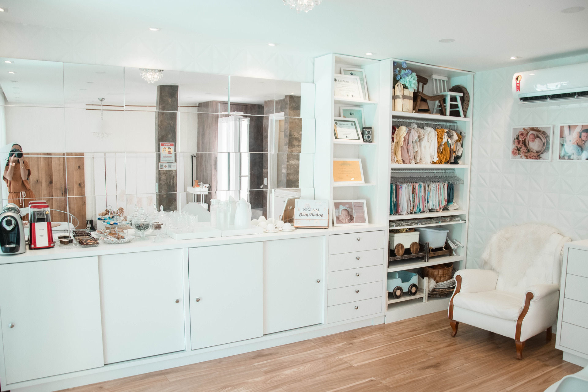 Nosso estúdio foi preparado e planejado para receber seu bebê com todo carinho, conforto e segurança que ele merece. Contamos com climatização, controle de temperatura e umidade do ar.